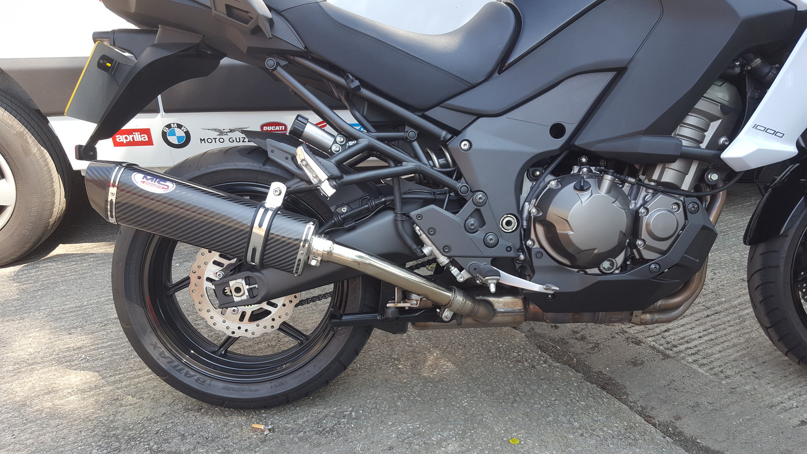 This motorbike exhaust is for the Kawasaki Versys SE KLZ1000 2020 – and comes with a link pipe fitting,